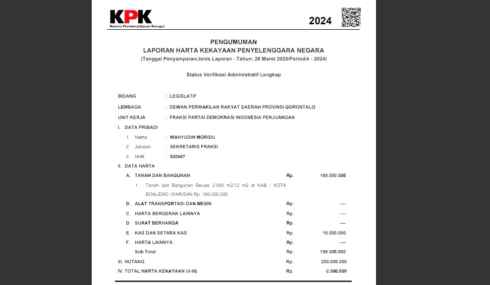 Wahyudin Moridu Mau Rampok Uang Negara Ternyata Harta Kekayaanya Minus Rp2 Juta, Begini Isi LHKPN